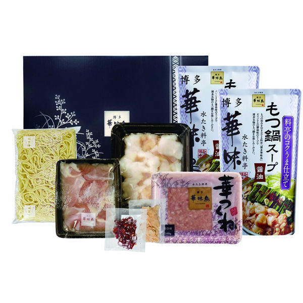 | 商品の特徴 | 水たき料亭「博多華味鳥」流にアレンジを加え、九州産銘柄鶏「華味鳥」のはらみと牛小腸を組み合わせたオリジナルのもつ鍋セット。惣菜・調理品ギフト,お歳暮 | ||