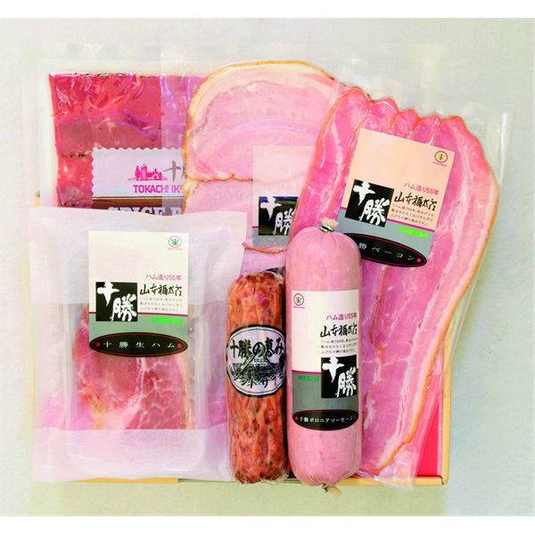 セット内容 十勝ベーコン100g、ロースハム・スパイスビーフ各60g、モモ生ハム40g、十勝の恵みソフトサラミ90g、ボロニアソーセージ250g お届け期間 11月9日(水)前後~12月24日(土)