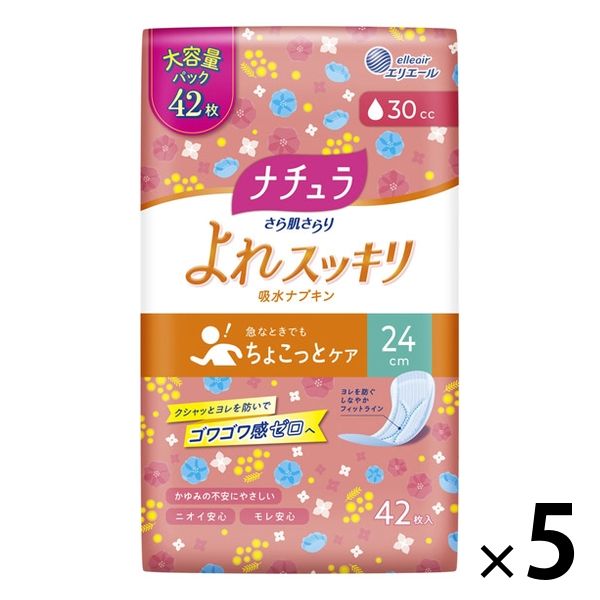 ナチュラさら肌さらりあんしん吸水ナプキン24cmロング30cc大容量 1セット(42枚×5個)エリエール 大王製紙