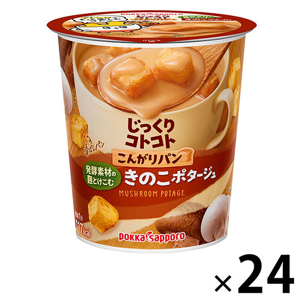 | 商品の特徴 | 発酵素材の麹がとけこんだ、まろやかな味わいのきのこポタージュに、こんがり焼いたひとくちサイズのパンが入った、「発酵素材がとけこむ濃厚ポタージュ」なので、パンにじゅわ~っとしみこんだおいしさで、小腹を満たしながら、発酵素材の麹がおいしくとれます。 | ||