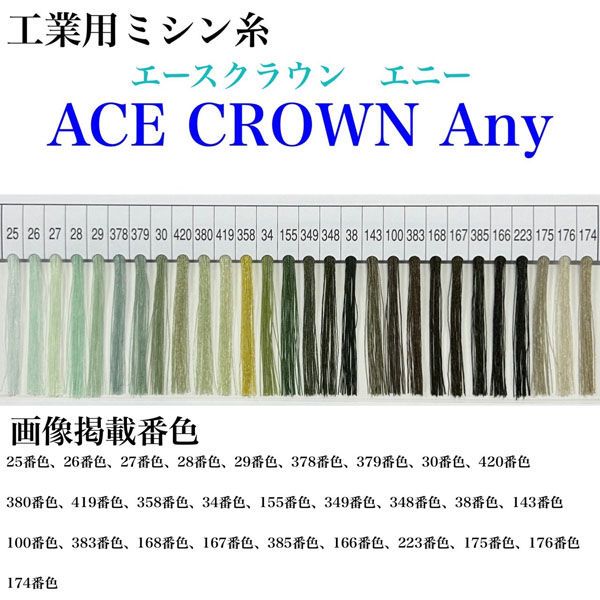 | 商品の特徴 | エースクラウン「Any」は、高強力、高伸度の66ナイロン100%の工業用ミシン糸です。高いストレッチ性を持っており、伸縮性のある素材、ニット等幅広く対応出来ます。「エースクラウン」ミシン糸シリーズ共通のカラーにて展開していますので、併せてご利用ください。 | ||