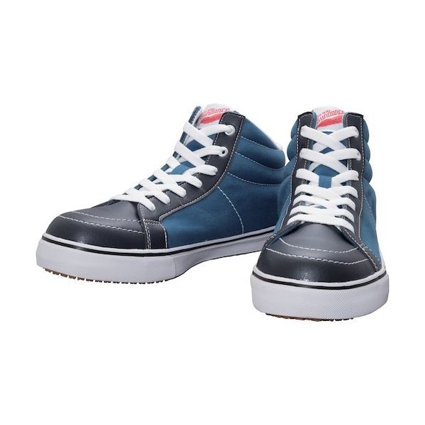 商品の特徴 ●厚さのあるクッションインソールで疲れにくいです。●鉄製先芯でつま先を保護します。●ハイカットでもかかとが低いため着脱が容易です。●スケーターシューズみたいにカジュアルなデザインです。