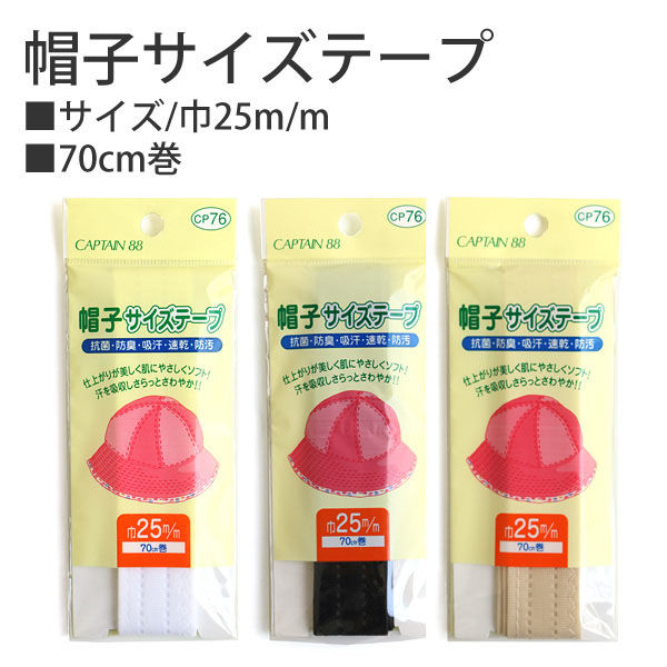 キャプテン 帽子サイズテープ ホワイト 25mm巾×70cm巻 CP76-1 1セット(3枚)