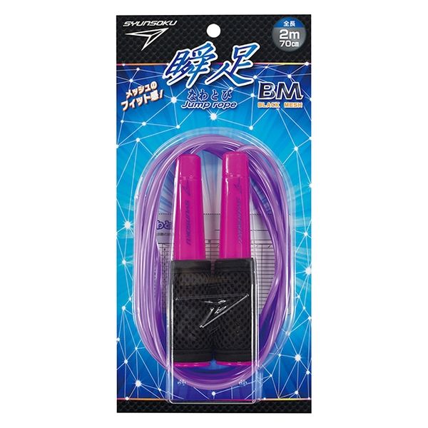 | 商品の特徴 | 小学生の体育、運動用におすすめの瞬足なわとびです。グリップは通気性とクッション性に優れたメッシュ素材。九角形のロープが軽快な風きり音を起こします!バネ状回転パーツがロープとグリップの摩擦を軽減しながら回転を実現。ロープの長さは回転パーツ内のストッパーで簡単に調節が可能。名前シール付き。 | ||