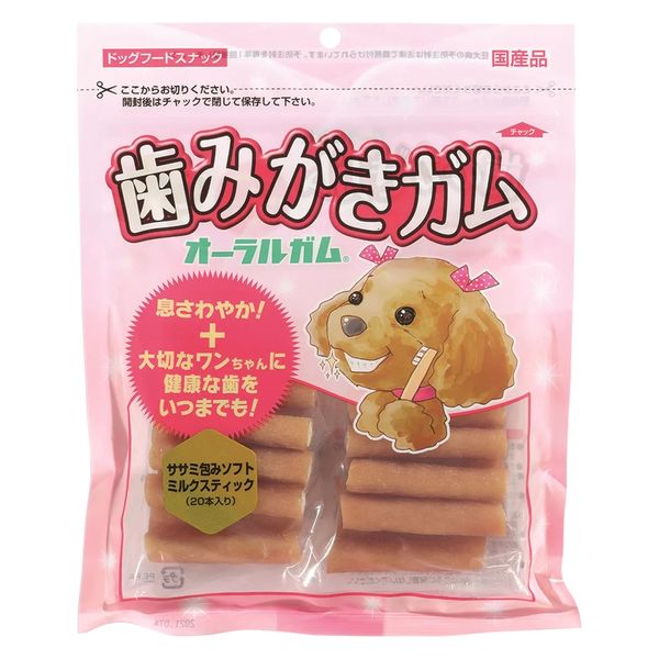 | 商品の特徴 | セミソフトのミルクガムをササミで包み、食べやすい長さにカットしました。年齢を気にせず与えられます | ||