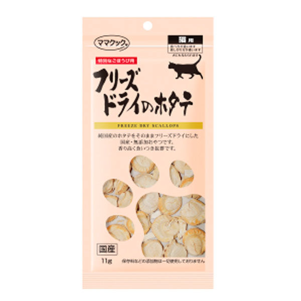 | 商品の特徴 | 純国産のホタテをそのままフリーズドライした国産無添加おやつです。薫り高く食いつき抜群です。 | ||