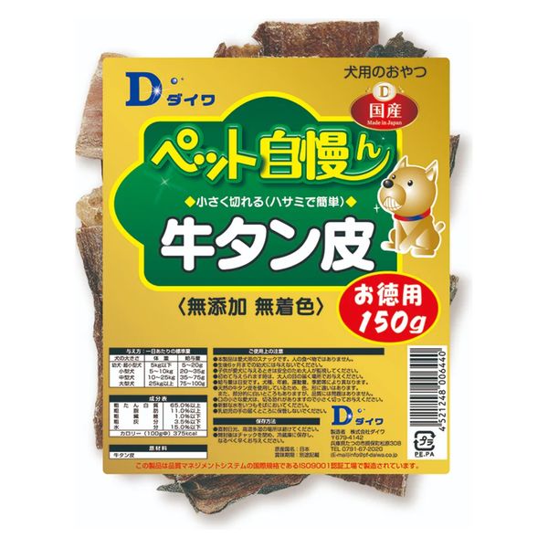 | 商品の特徴 | 無添加、無着色の国産牛タン皮です。噛んでいるうちに歯もきれいになります。 | ||