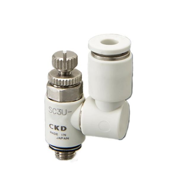 | 商品の特徴 | ●配管方向を360°自由に設定できるユニバーサルタイプです。●樹脂部には難燃性PBT(UL94規格V-0相当)を標準採用しています。●配管ねじ部にフッ素系樹脂のシール剤をコーティングしています。●微速シリンダなど流量が少なく、微調整が必要な機器の制御に最適です。 | ||