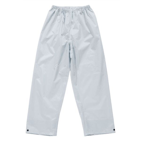 | 商品の特徴 | ●表生地にはPVC素材をラミネートしたことにより、汚れに強く、高い強度を実現しています。●防水性UPの為、シンプルな作りに仕上げています。●腰にはズリ下がり防止の為のベルトループと裾口にボタンアジャスターを採用。●ゆったりのサイズ設定なので体格を問わずお選びいただけます。●股下78cm●ポリエステル100%PVCラミネート | ||