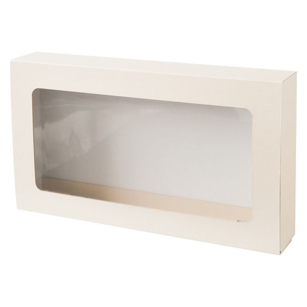 | 商品の特徴 | フタの部分に大きな窓のついた、身ふた一体型のギフトボックスです。焼き菓子ギフトや衣料、雑貨などのギフトに。 | ||