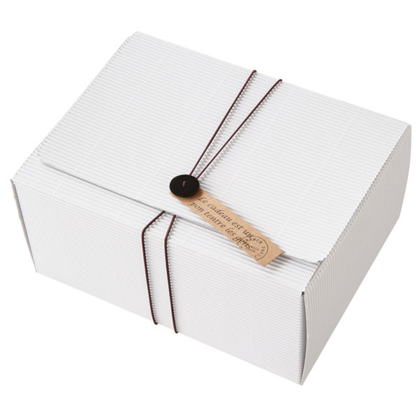| 商品の特徴 | でこぼこした素材感が可愛らしいホワイトギフトボックスです。付属のボタン付ゴムタッグでカンタンに素敵なギフトができあがり! | ||