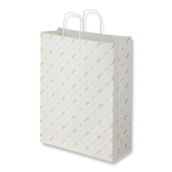 | 商品の特徴 | 可愛いリボンを散りばめた紙紐手付の手提げ袋です。 | ||