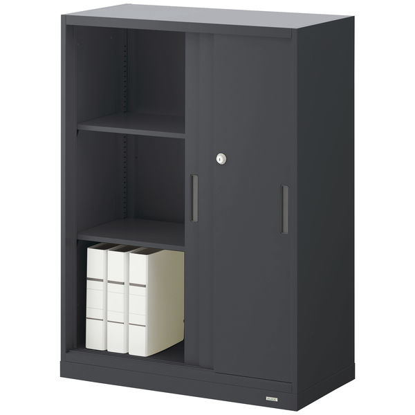 オカムラ スチール収納VILLAGE 3枚引違い(シリンダー錠) 3段 本体(下置き) 幅800×奥行400×高さ1100mm ブラック 1台(取寄品)