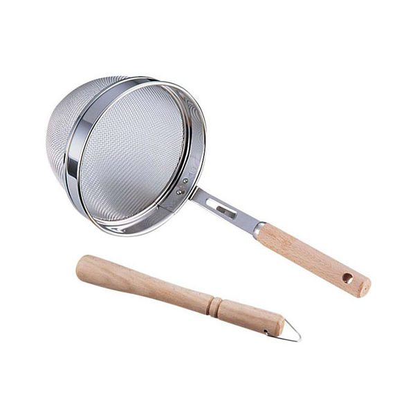 | 仕様 | ●規格:大●外径(mm):130●質量(g):140 | 材質 | 本体:18-8ステンレス、ハンドル・こし棒:木製 |