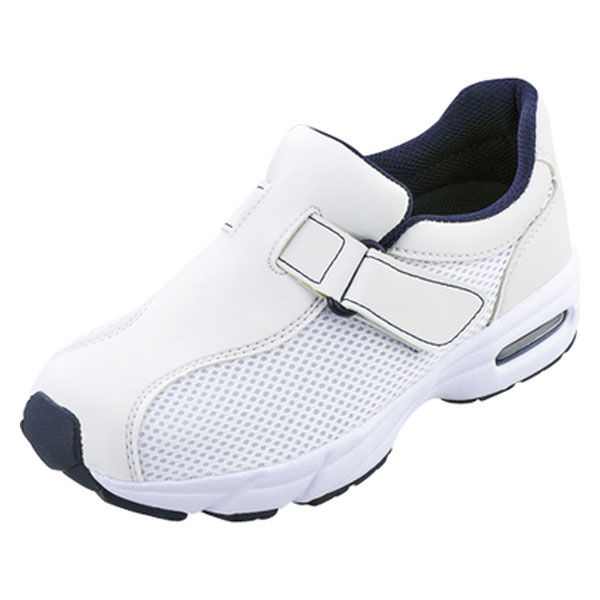 | 商品の特徴 | 耐久性に優れたエアソールと衝撃吸収材付きのカップインソールで、足への衝撃を和らげ負担を軽減します。足の屈曲に合わせてしなやかに曲がるようソール形状に工夫がされているナースシューズです。 | ||