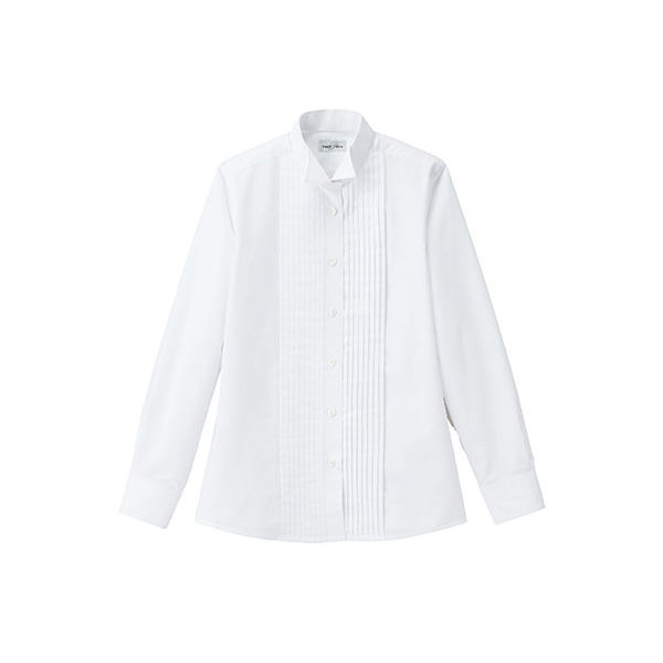 レディス《長袖ブラウス》防シワ・防汚機能付、華やかな席に立ち襟の先が折れた襟は正装服に欠かせない。ピンタック(ウイング)