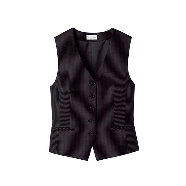 レディス《ベスト》飲食サービスにも適した撥水防汚機能付、ストレッチ。[ストライプ]