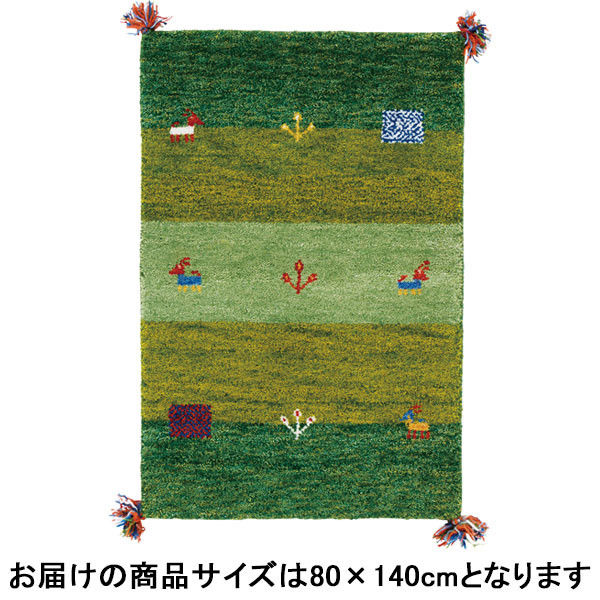 萩原 ギャッベ マット・ラグ GABBEH D15 グリーン 約80×140cm 1枚(直送品)