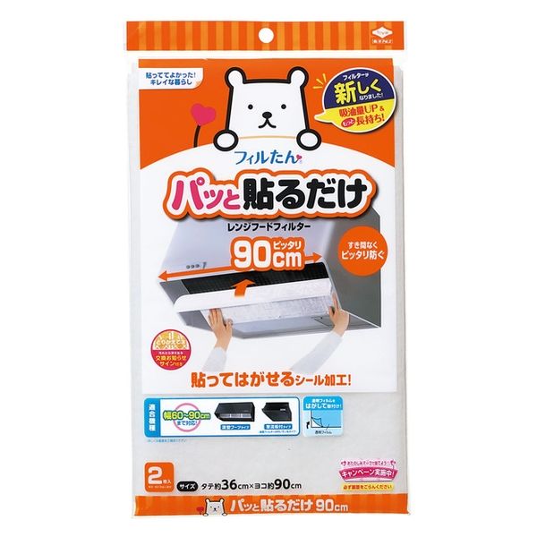 フィルたん パッと貼るだけ レンジフードフィルター 深型用 大型 幅90cm 1個(2枚入) 東洋アルミエコープロダクツ