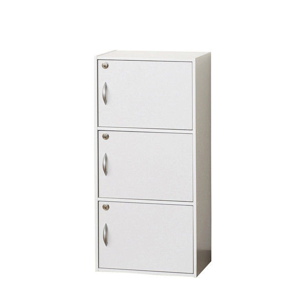 【軒先渡し】関家具 鍵付き3段ボックス ホワイト 奥行290×幅420×高さ875mm 97309 1台(直送品)