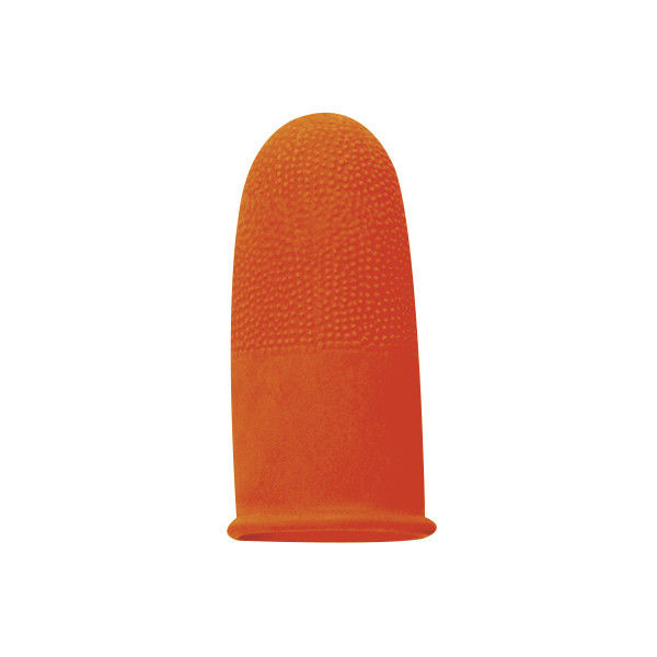 ロングセラーの商品で、エンボス加工による滑り止め付きの指サックです。肉厚の作りで指先を保護し、長時間の作業が可能です。