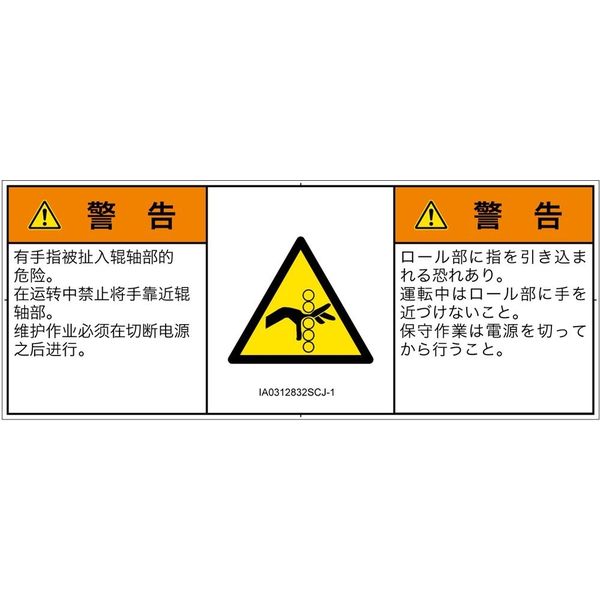 | ラベルサイズ | W105mm×H42mm | 危険の種類 | 機械的な危険 引き込み(ローラ) |