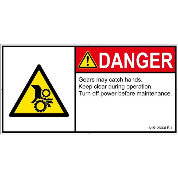 | シンボルマーク準拠規格 | メーカーオリジナル(ANSI Z535.3-2011準拠) | 危険の種類 | 機械的な危険 引き込み(ギア) |