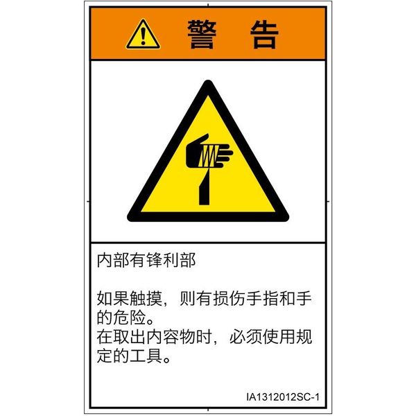 PL警告表示ラベル(ISO準拠)│機械的な危険:切傷│IA1312012│警告│Sサイズ│簡体字(タテ)│16枚 IA1312012SC-1(直送品)