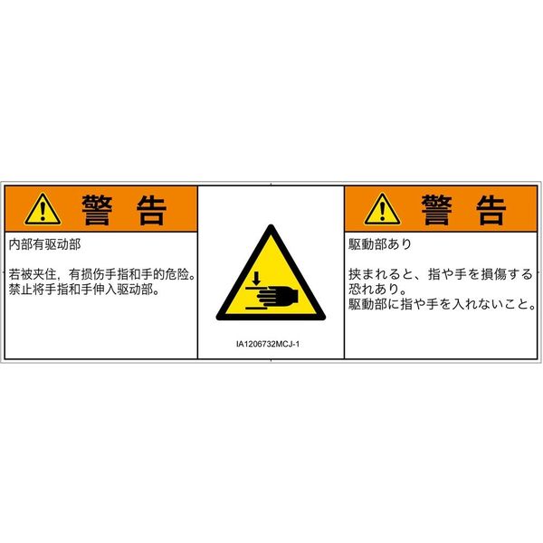 | ラベルサイズ | W140mm×H47mm | 危険の種類 | 機械的な危険 はさまれ |