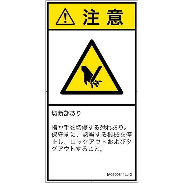PL警告表示ラベル(ISO準拠)│機械的な危険:切断│IA0900811│注意│Lサイズ│日本語(タテ)│6枚 IA0900811LJ-2(直送品)