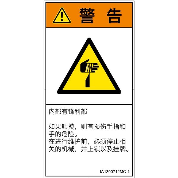 PL警告表示ラベル(ISO準拠)│機械的な危険:切傷│IA1300712│警告│Mサイズ│簡体字(タテ)│10枚 IA1300712MC-1(直送品)