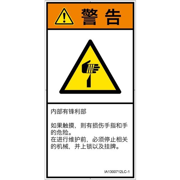 PL警告表示ラベル(ISO準拠)│機械的な危険:切傷│IA1300712│警告│Lサイズ│簡体字(タテ)│6枚 IA1300712LC-1(直送品)
