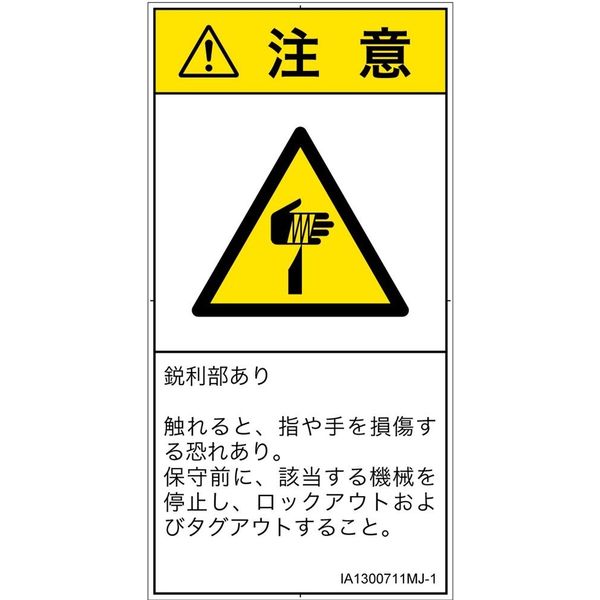 PL警告表示ラベル(ISO準拠)│機械的な危険:切傷│IA1300711│注意│Mサイズ│日本語(タテ)│10枚 IA1300711MJ-1(直送品)