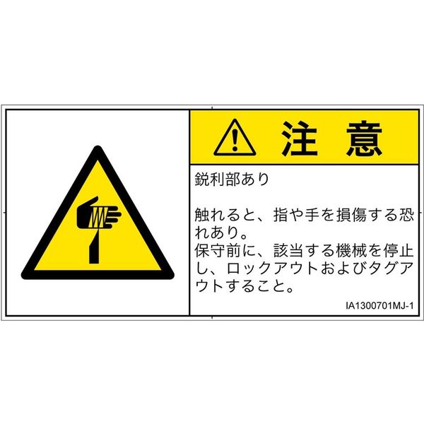 PL警告表示ラベル(ISO準拠)│機械的な危険:切傷│IA1300701│注意│Mサイズ│日本語(ヨコ)│10枚 IA1300701MJ-1(直送品)