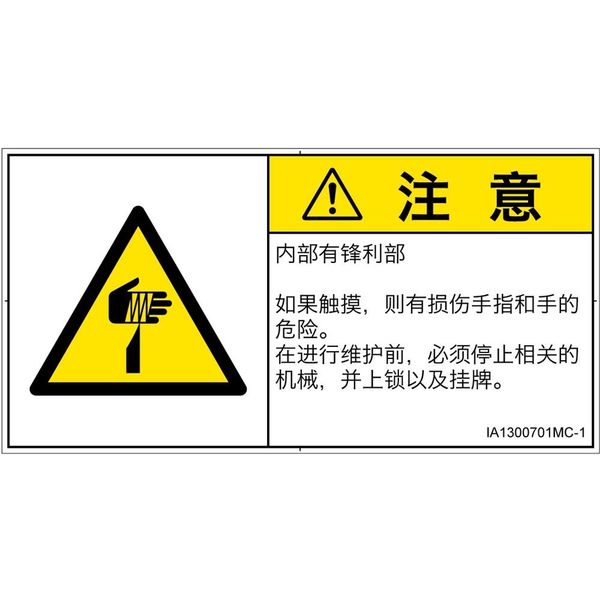 PL警告表示ラベル(ISO準拠)│機械的な危険:切傷│IA1300701│注意│Mサイズ│簡体字(ヨコ)│10枚 IA1300701MC-1(直送品)