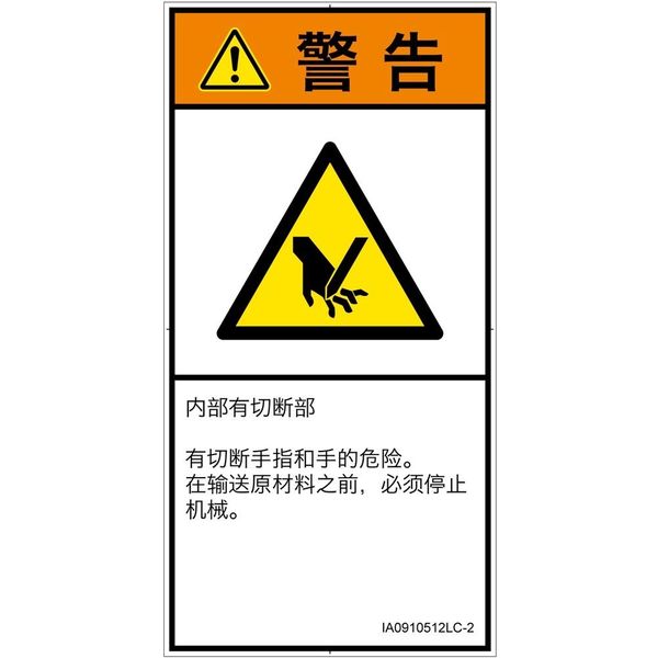PL警告表示ラベル(ISO準拠)│機械的な危険:切断│IA0910512│警告│Lサイズ│簡体字(タテ)│6枚 IA0910512LC-2(直送品)