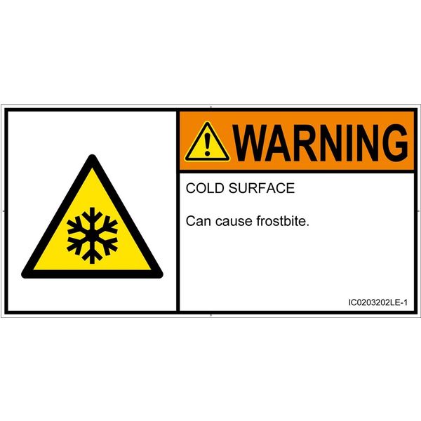 PL警告表示ラベル(ISO準拠)│熱的な危険:低温/凍結│IC0203202│警告│Lサイズ│英語(ヨコ)│6枚 IC0203202LE-1(直送品)