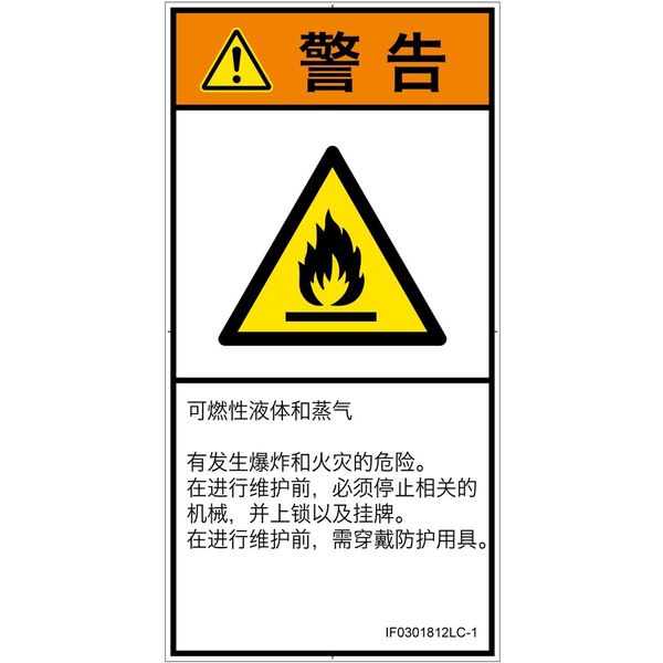 | 商品の特徴 | ●可燃性液体・蒸気●爆発・火災の恐れあり。●保守前に、該当する機械を停止し、ロックアウトおよびタグアウトすること。●保守前に、保護具着用。 | ||