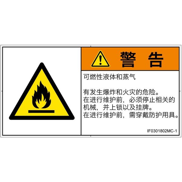 | 商品の特徴 | ●可燃性液体・蒸気●爆発・火災の恐れあり。●保守前に、該当する機械を停止し、ロックアウトおよびタグアウトすること。●保守前に、保護具着用。 | ||