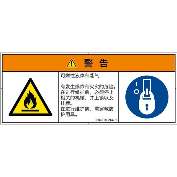 | 商品の特徴 | ●可燃性液体・蒸気●爆発・火災の恐れあり。●保守前に、該当する機械を停止し、ロックアウトおよびタグアウトすること。●保守前に、保護具着用。 | ||