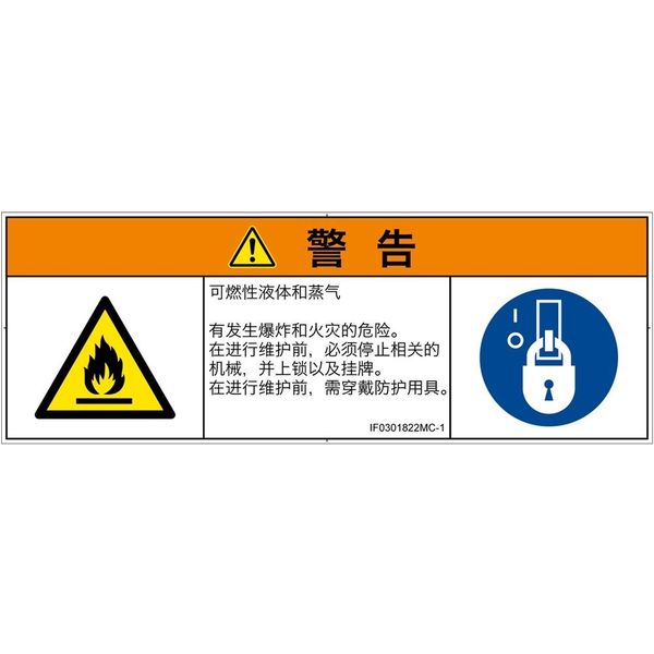 | 商品の特徴 | ●可燃性液体・蒸気●爆発・火災の恐れあり。●保守前に、該当する機械を停止し、ロックアウトおよびタグアウトすること。●保守前に、保護具着用。 | ||