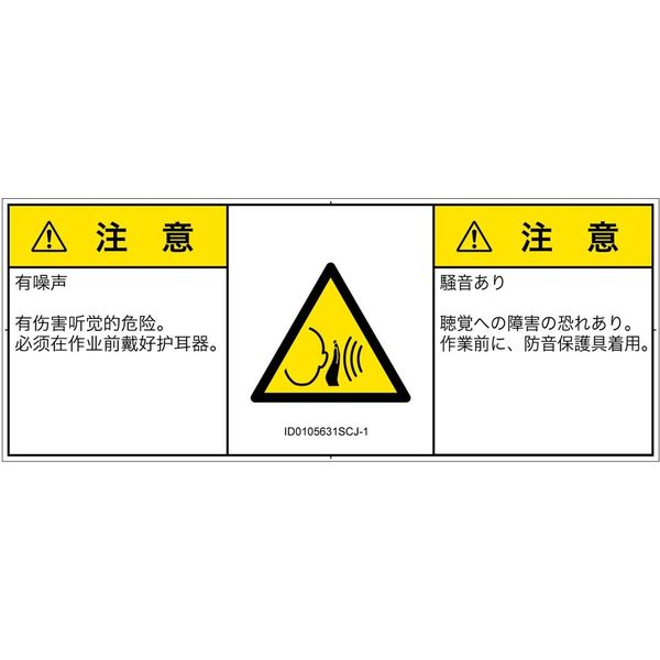 | ラベルサイズ | W105mm×H42mm | 危険の種類 | 騒音による危険 突然の騒音 |