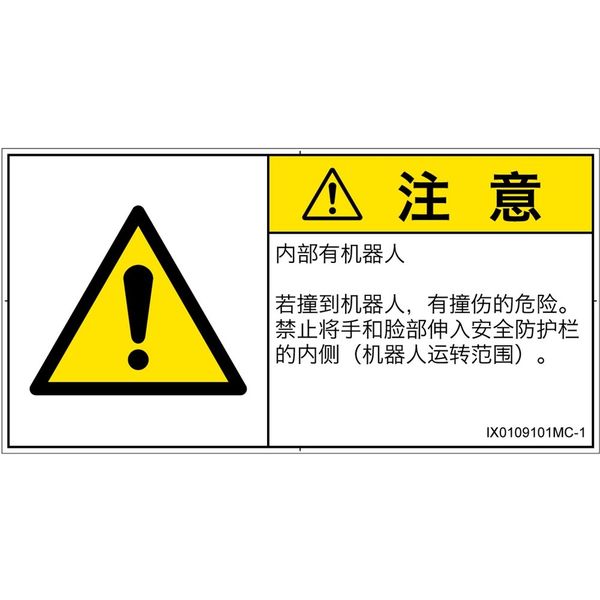 | シンボルマーク準拠規格 | ISO 7010:2011[W001]準拠、SEMI S1-1015準拠 | フォーマット準拠規格 | ISO 3864-2:2016、ISO 3864-1:2011 |