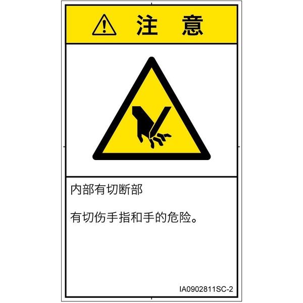 PL警告表示ラベル(ISO準拠)│機械的な危険:切断│IA0902811│注意│Sサイズ│簡体字(タテ)│16枚 IA0902811SC-2(直送品)