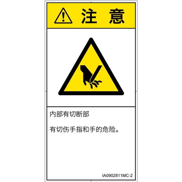 PL警告表示ラベル(ISO準拠)│機械的な危険:切断│IA0902811│注意│Mサイズ│簡体字(タテ)│10枚 IA0902811MC-2(直送品)