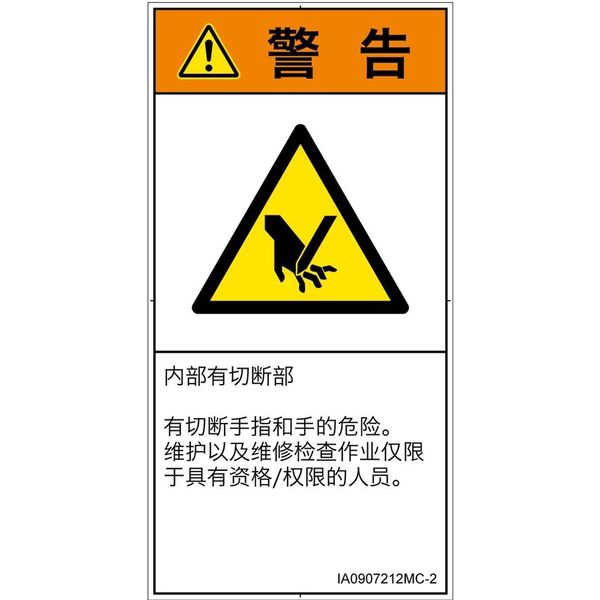 PL警告表示ラベル(ISO準拠)│機械的な危険:切断│IA0907212│警告│Mサイズ│簡体字(タテ)│10枚 IA0907212MC-2(直送品)