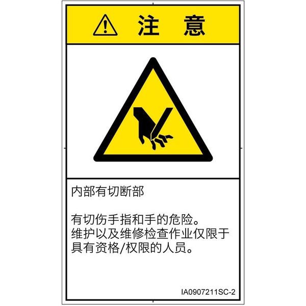 PL警告表示ラベル(ISO準拠)│機械的な危険:切断│IA0907211│注意│Sサイズ│簡体字(タテ)│16枚 IA0907211SC-2(直送品)