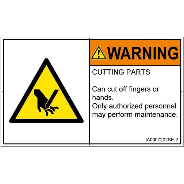 PL警告表示ラベル(ISO準拠)│機械的な危険:切断│IA0907202│警告│Sサイズ│英語(ヨコ)│16枚 IA0907202SE-2(直送品)