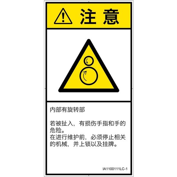 | ラベルサイズ | W62mm×H122mm | 危険の種類 | 機械的な危険 引き込み(逆回転ローラ) |