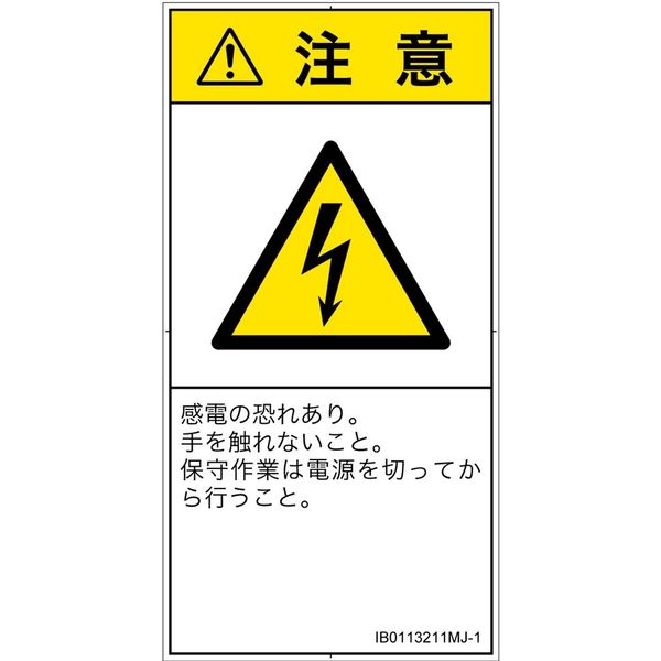 PL警告表示ラベル(ISO準拠)│電気的な危険:感電│IB0113211│注意│Mサイズ│日本語(タテ)│10枚 IB0113211MJ-1(直送品)